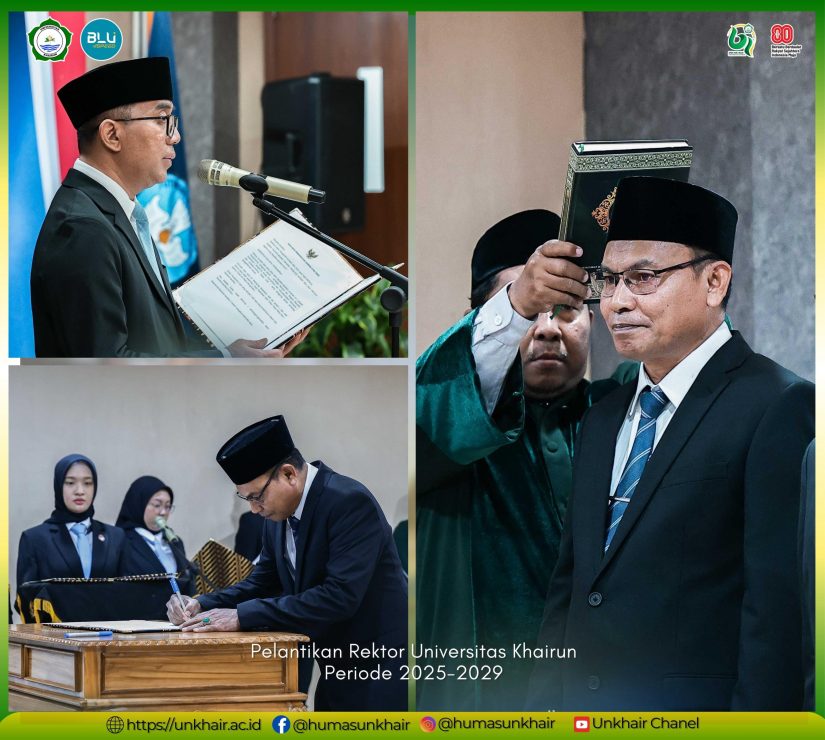 Prof. Brian turut menyampaikan apresiasi kepada Rektor Unkhair sebelumnya, Dr. M. Ridha Ajam, M.Hum, dan Dr. Drs. Beatus Tambaib, M.A, atas dedikasi selama menjabat.
