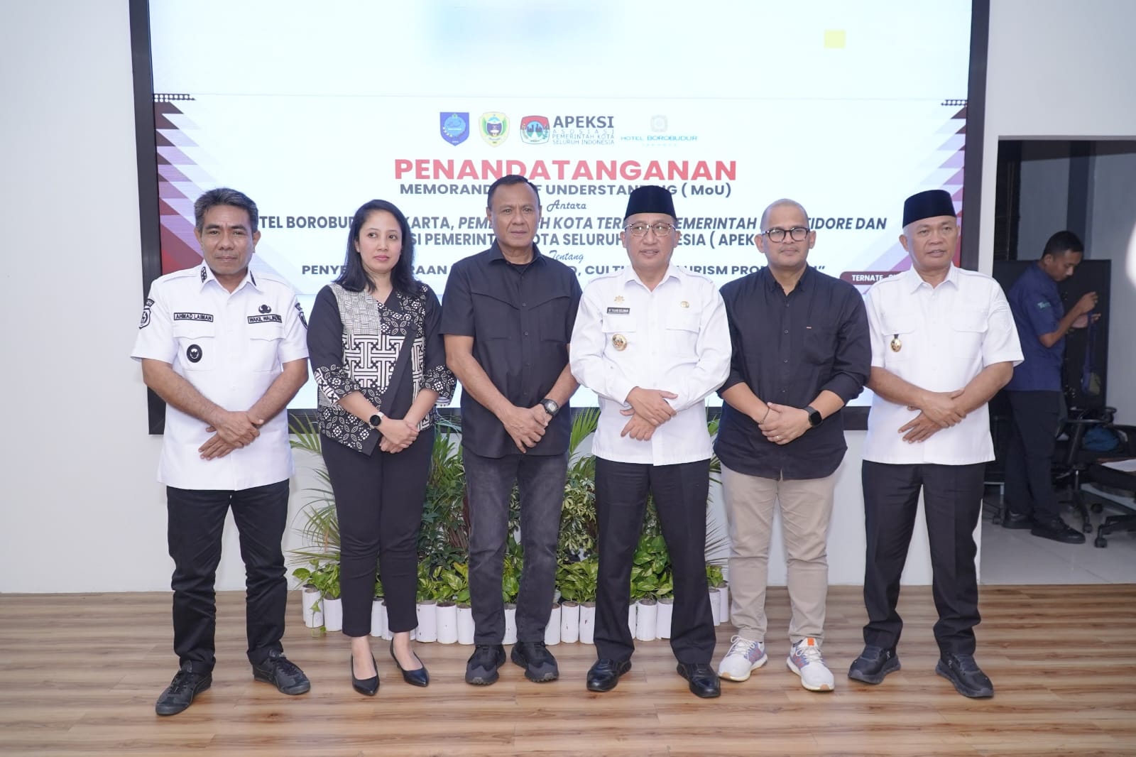 TIDORE, HR – Langkah besar untuk mendorong sektor pariwisata dan ekonomi daerah resmi dimulai, bertempat di Kantor Bappelitbangda Kota Ternate, Rabu (1/4/2026) Pemerintah Kota Tidore Kepulauan dan Pemerintah Kota Ternate resmi teken Memorandum of Understanding (MoU) dengan Hotel Borobudur Jakarta dan Asosiasi Pemerintah Kota Seluruh Indonesia (APEKSI) terkait penyelenggaraan program “Food, Culture dan Tourism Promotion”.