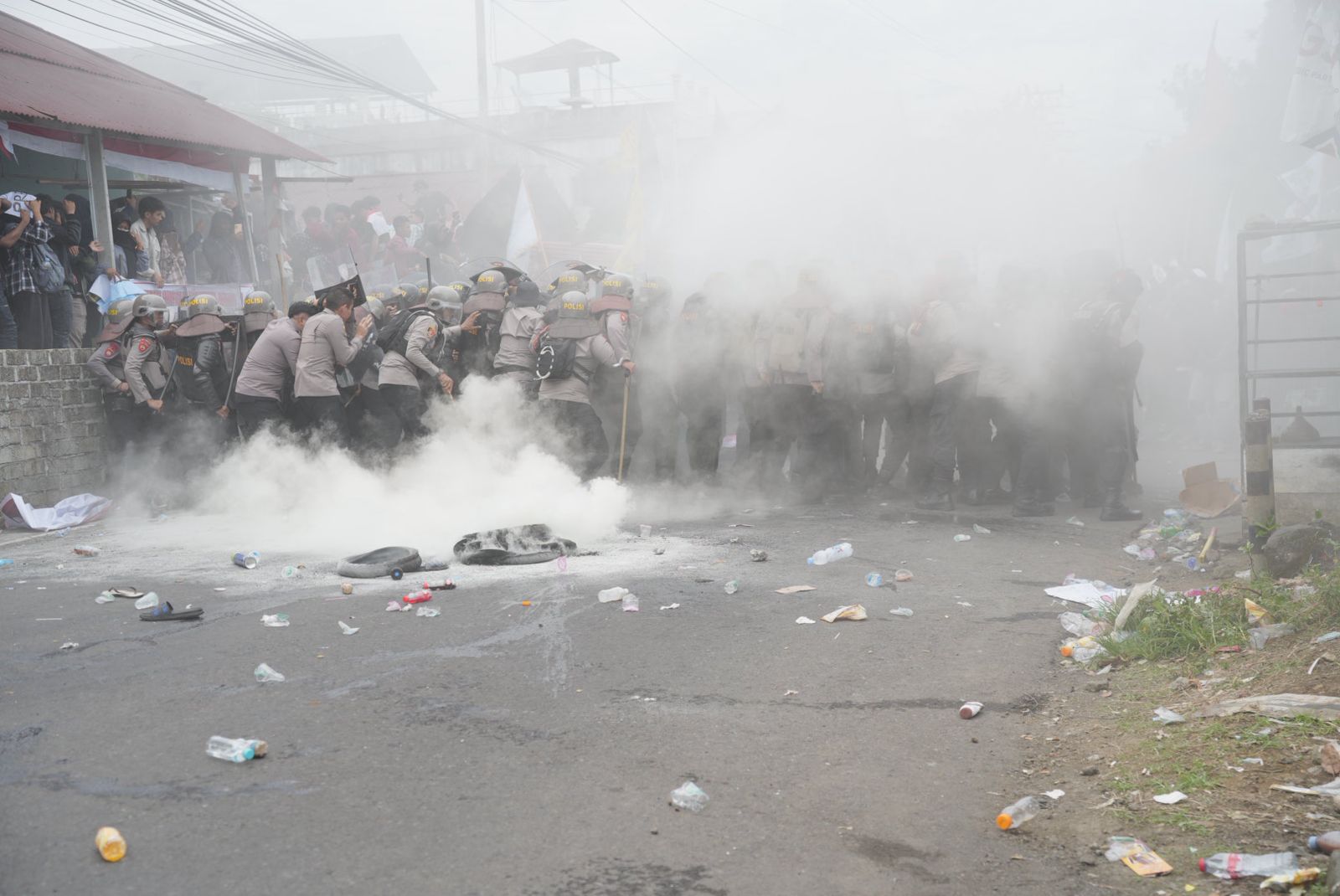 Imbasnya, ada beberapa orang massa aksi diamankan dan sejumlah anggota polisi yang sesak napas akibat gas air mata.