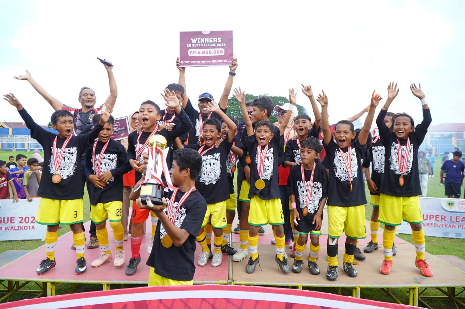 TIDORE, HR – SD Negeri Tuguiha B keluar sebagai winner up pada turnamen sepak bola piala Wali Kota yang bertajuk SD Super League tahun 2025 setelah berhasil mengalahkan Madrasah Ibtidaiyah Negeri 4 Tidore dengan skor akhir 1-0.