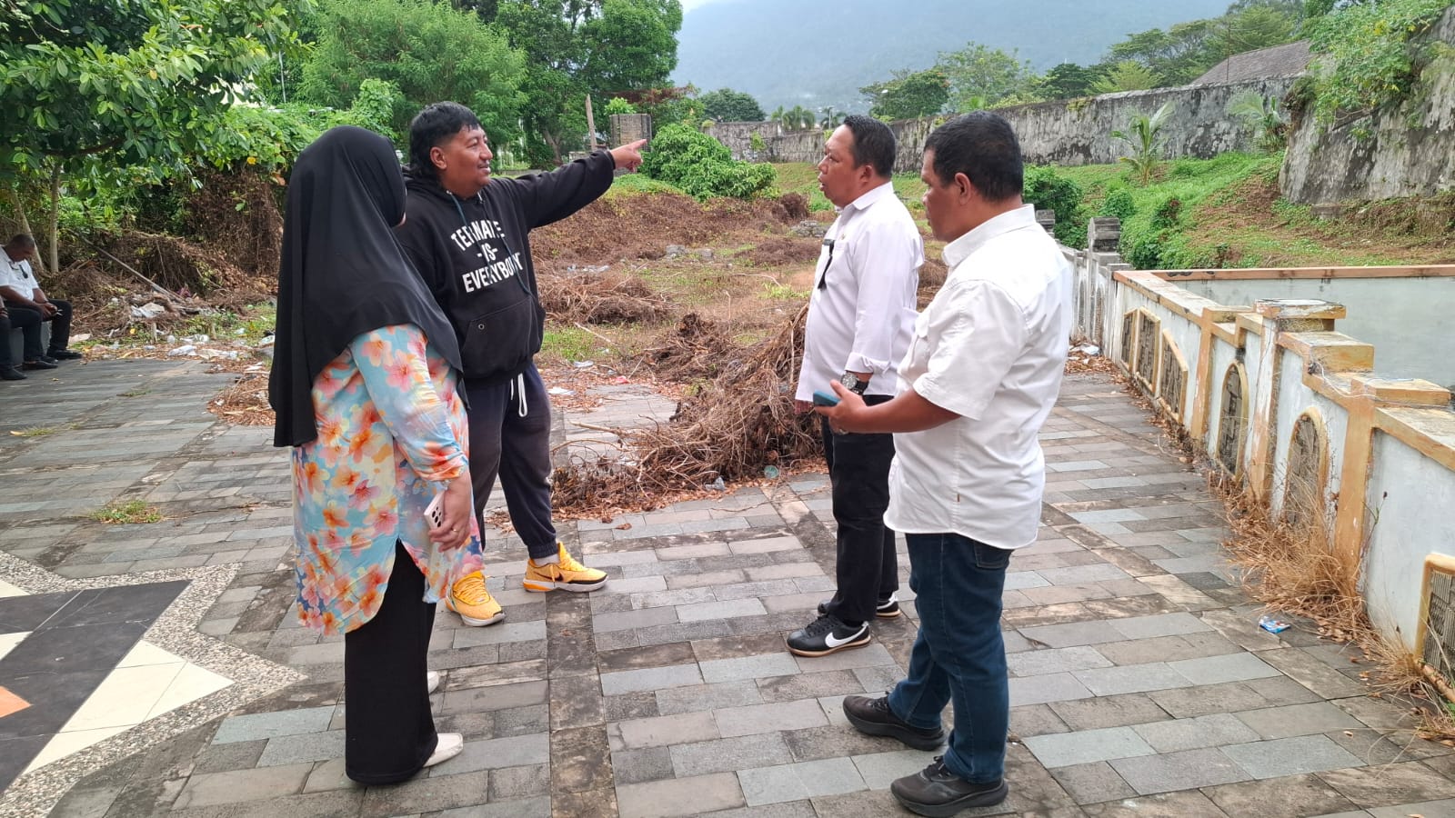 TERNATE, HR – Sekertaris Daerah (Sekda) Kota Ternate Rizal Marsaoly didampingi Kepala Dinas Pemuda dan Olahraga (Dispora) Kota Ternate Sutopo Abdullah dan Coach Basket Syahrian Zeinsal meninjau lahan untuk pembangunan lapangan basket, di Kelurahan Gamalama.