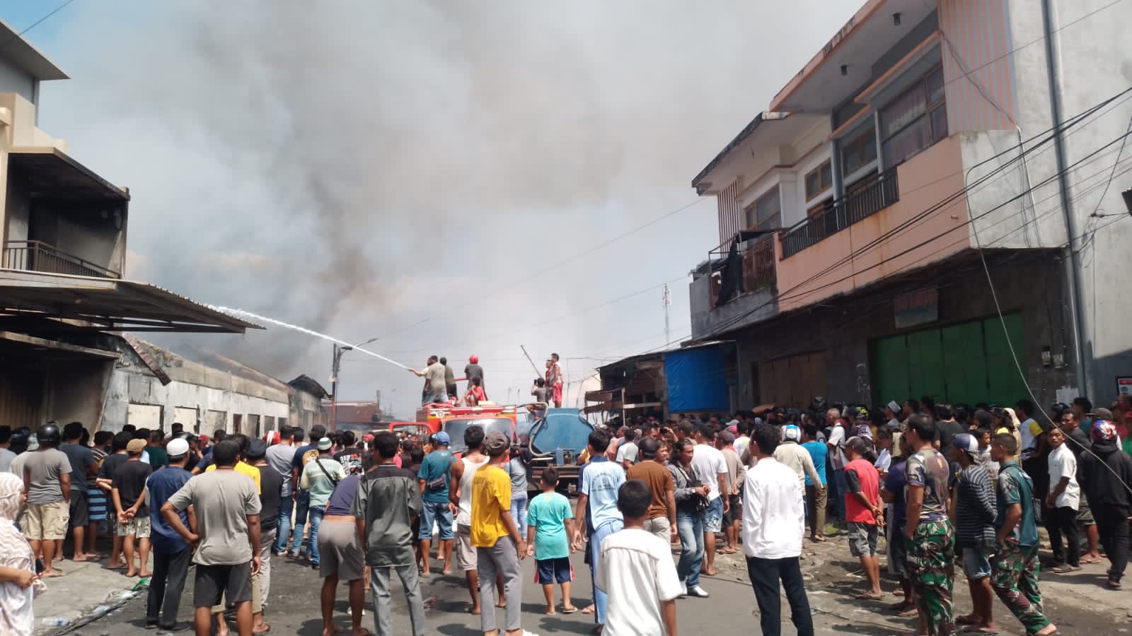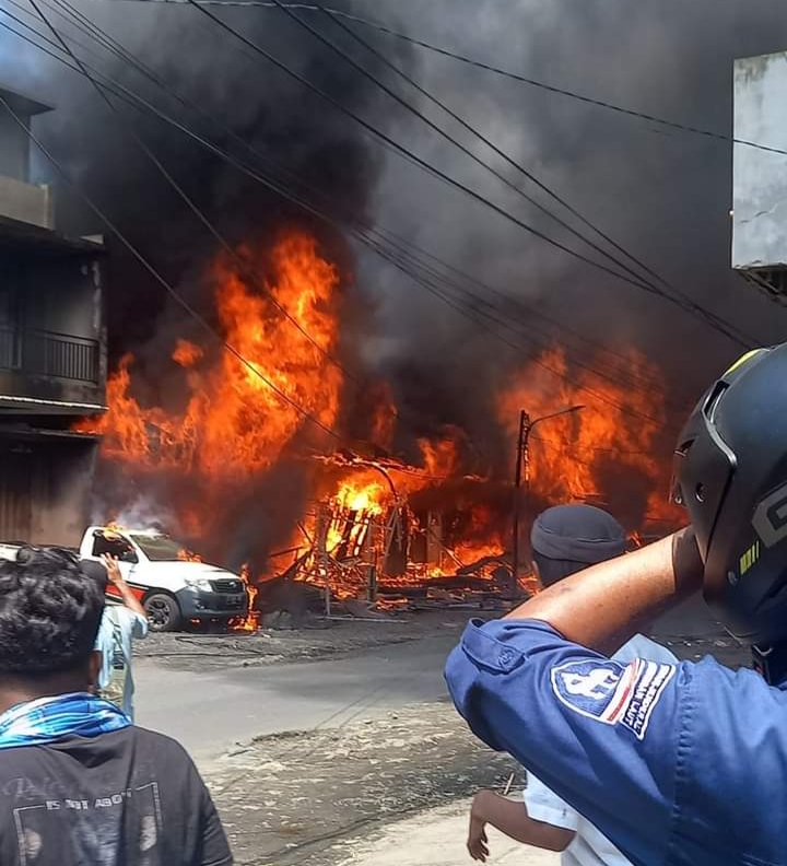 Bahkan, indekos di belakang toko juga ikut terbakar. Ditambah beberapa unit mobil dan sepeda motor jenis bentor yang diparkir di sekitar toko turut terbakar akibat tersambar api.