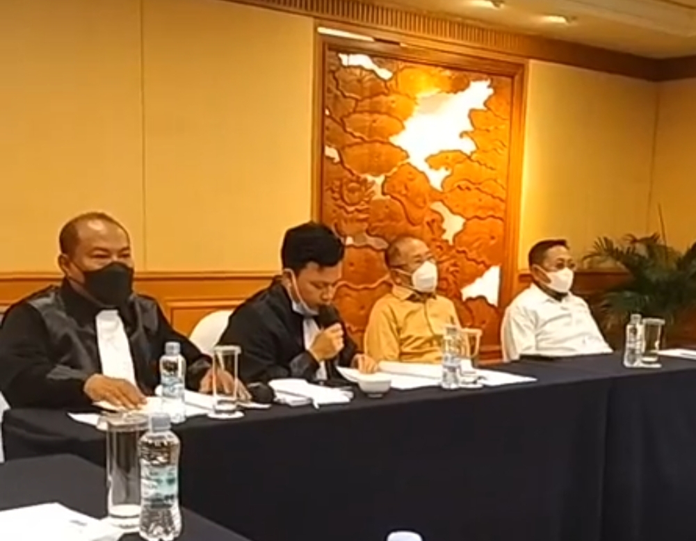 TOBELO, HR—-Kuasa hukum Bupati dan Wakil bupati Halmahera Utara, Frans Manery dan Muchlis Tapi sebagai pihak pemohon, Ramli Antula, SH membacakan petitum permohonannya di sidang Mahkamah Konstitusi (MK), Selasa (08/03/2022).