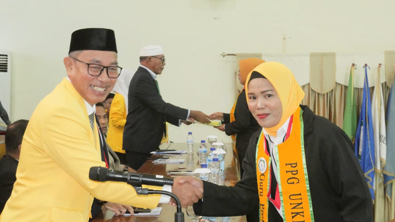 Rektor Unkhair Dr. M. Ridha Ajam, M. Hum, dalam sambutannya, mengatakan profesi guru bukan sekadar pekerjaan, melainkan panggilan jiwa yang penuh dedikasi dan tanggung jawab dalam mencerdaskan kehidupan bangsa.
