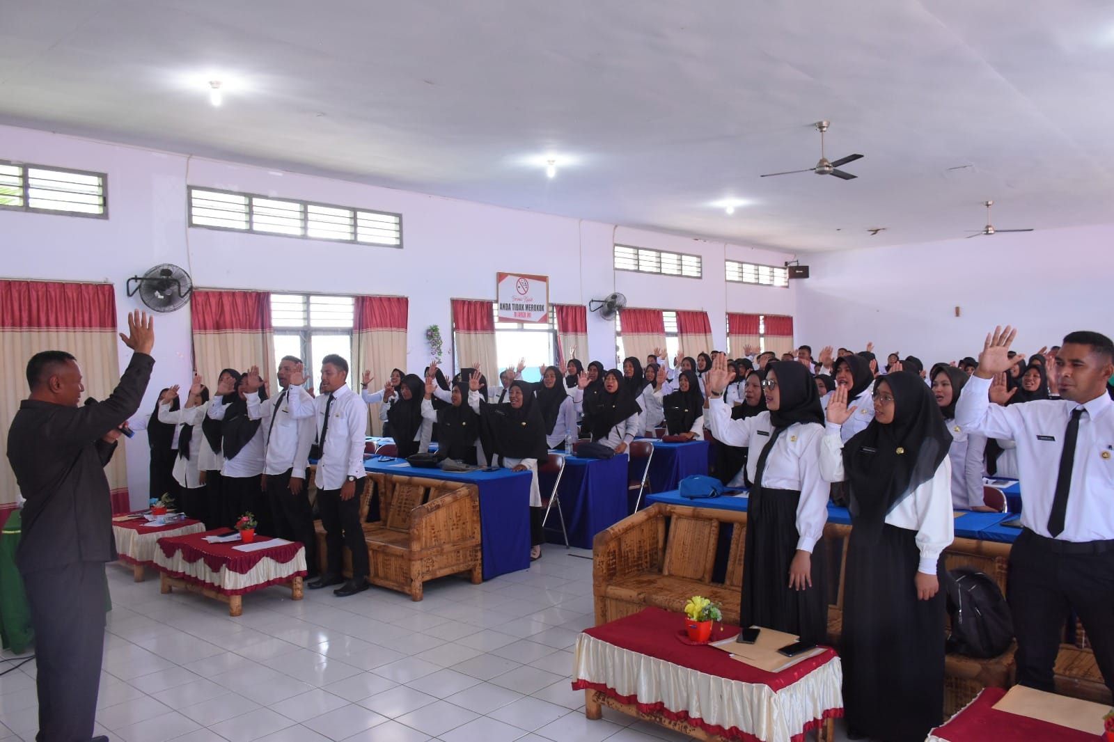 “Selamat, hari ini semua diberikan kepercayaan oleh daerah, untuk memberikan pendidikan kepada generasi penerus daerah ini, sebagai guru PPPK, kita semua memiliki tanggung jawab yang sama, kami semua pernah merasakan masa-masa sekolah dari tingkat paling dasar hingga tinggi. Guru adalah tauladan bagi murid-murid, kita semua adalah manusia dan pasti memiliki kekurangan, karena kesempurnaan hanya milik Allah,” ucapnya.