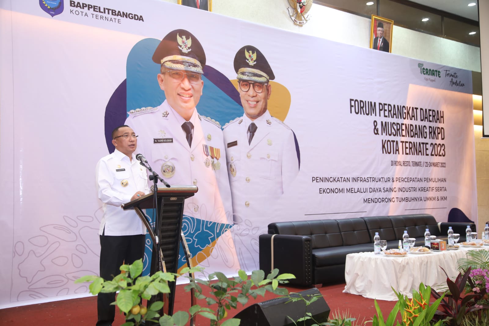 TERNATE, HR – Wali Kota Ternate, M. Tauhid Soleman membuka Forum Perangkat Daerah dan Musyawarah Rencana Pembangunan (Musrenbang) Rencana Kerja Pemerintah Daerah (RKPD) Kota Ternate, Rabu (23/3/2022) di Royal Resto.