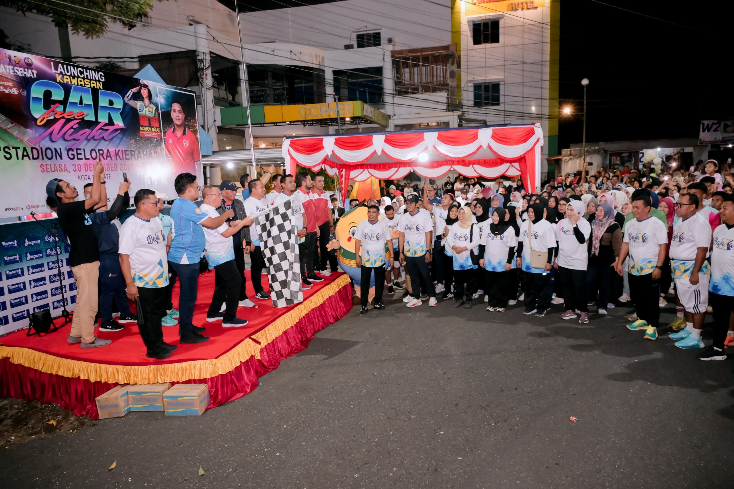 TERNATE, HR – Ratusan warga padati launching kawasan Car Free Night di Stadion Gelora Kie Raha, Selasa (30/12/2025). Kawasan Car Free Night ini dibuka pada hari Jumat dan Sabtu malam mulai dari pukul 18.00 WIT – 22. 30 WIT.