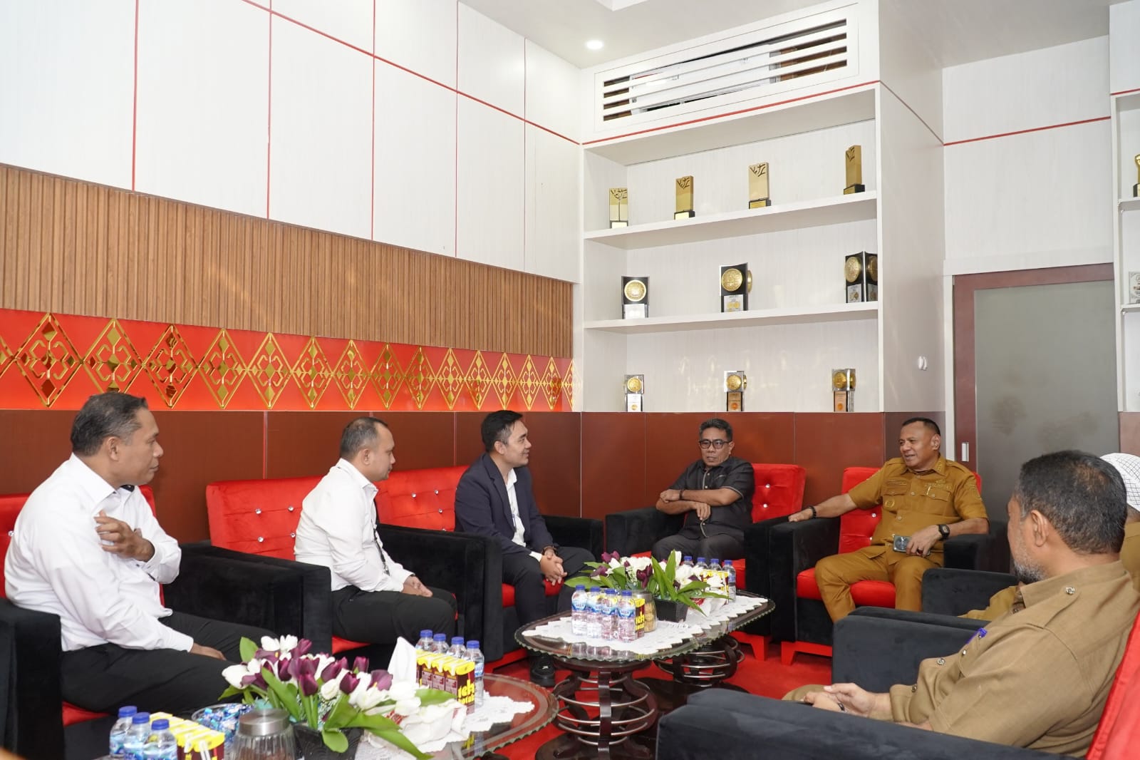 TIDORE, HR – Wali Kota Tidore Kepulauan Muhammad Sinen didampingi Wakil Wali Kota Ahmad Laiman menerima kunjungan silaturahmi Kepala BRI Cabang Soasio yang baru Anggar Diosdado beserta jajaran di Ruang Kerjanya, Senin (9/3/2026).