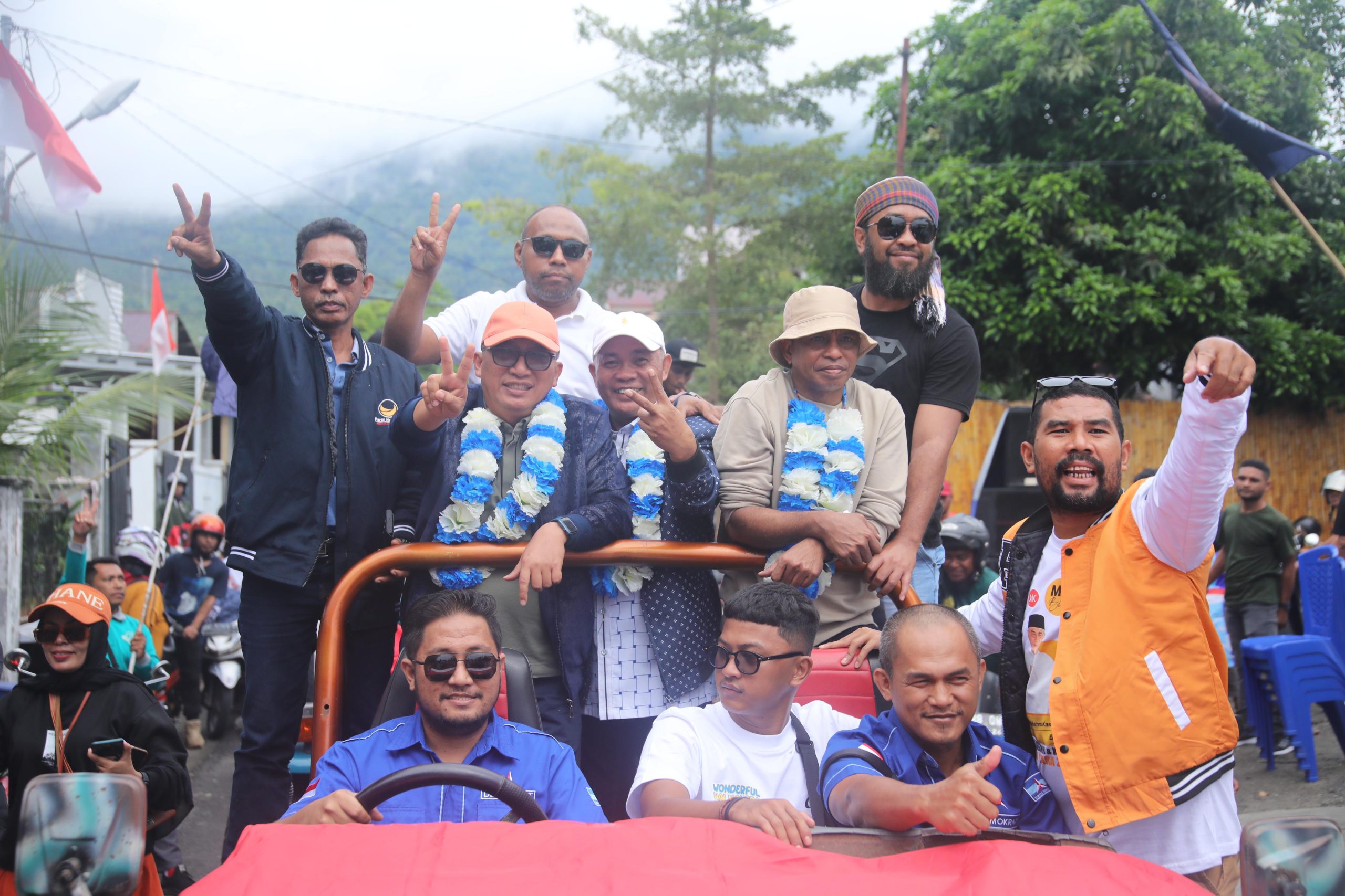 Kedua pasangan ini langsung menaiki kendaraan roda empat Jeep yang telah terpasang atribut partai. Dan lalu diarak konvoi mengelilingi Kota Ternate dengan rute perjalanan Bandara Jln Batu Angus – Jl Pemuda, Jl Sultan Baabullah, Jl Kesatriaan, Jl Merdeka, Jl Ais Nasution, Jl Kapitan Pattimura, Jl Yos Sudarso, Jl Cempaka, Jl Hasan Esa, Jl Raya Bastiong, Jl Raya Kayu Merah, Jl Raya Kalumata Puncak, Jl Tugu Makugawene, Jl Melati dan Jl Jan.(nty)