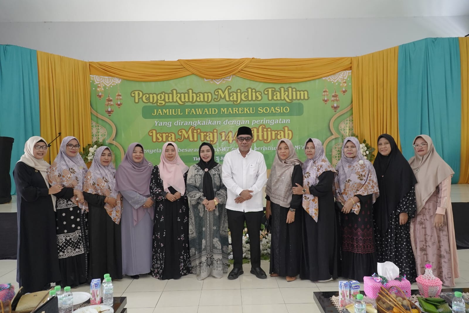 TIDORE, HR – Wakil Wali Kota Tidore Kepulauan Ahmad Laiman didampingi Ketua TP PKK Kota Tidore Kepulauan Hj. Rahmawati Muhammad Sinen dan Ketua I TP PKK Kota Tidore Sumiyati Ahmad Laiman menghadiri pengukuhan Majelis Ta’lim Jamiul Fawaid Mareku Soasio di Aula SMA Negeri 1 Tidore, Sabtu (17/1/2026).